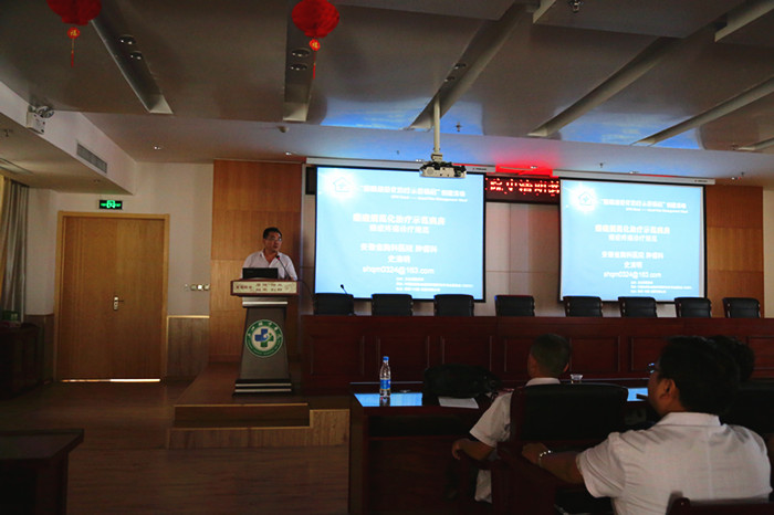 在省卫计委及省肿瘤治疗中心的安排下,9月9日下午省胸科医院肿瘤科专家史清明主任应邀来我院指导工作。 史主任先进行了教学查房,指导癌痛病人止痛治疗及相关药物剂量滴定,随后给我院肿瘤科全体医务人员进行了精彩的学术讲座,并分享癌痛规范化治疗示范病房创建的相关工作经验,对肿瘤科创建癌痛规范化治疗示范病房工作起到了很大的推动作用。 我院系安徽省第三批癌痛示范病房创建单位,继我院启动癌痛示范病房创建活动近年以来,在院导的关心和支持下,肿瘤科各项工作正在有序开展。