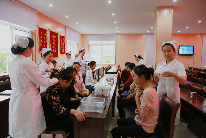 中医科普小组成员给居民们带来养生课堂的同时,免费为社区居民们提供耳穴埋豆、艾灸、拔火罐以及刮痧等中医特色服务,护理部潘玉荣主任和其他几位科普小组成员边为居民们做健康指导,边告知他们节日期间需要注意的事项,受到居民的致好评。
