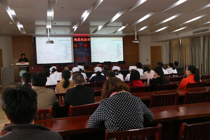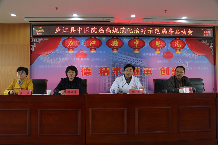 院党委书记陈明代表我院热烈欢迎各位专家的到来,他指出,创建癌痛规范化治疗示范病房是医院为进步加强肿瘤规范化诊疗管理,提高癌痛规范化治疗水平,提高肿瘤患者生活质量而开展的项重要活动,他要求相关科室务必认真学习、共同协作,把工作做实,保证创建活动顺利完成。
