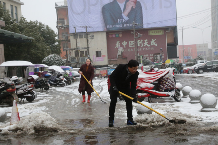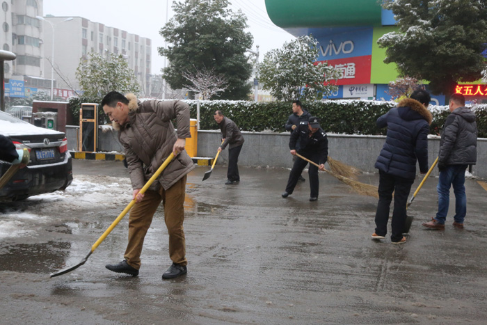 经过个多小时的奋战,医院的主要入口、主干道等地的积雪全部铲除,为来往行人开辟了条洋溢着温情的通畅之路。清扫完积雪,大家又纷即回到自己的工作岗位。