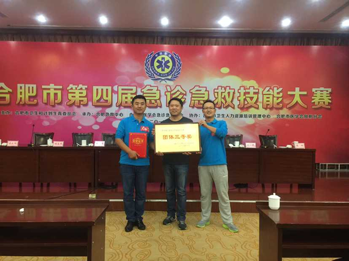10月17日至18日,我院急诊急救技能选手王寅、胡斌、王锐三位同志在钱小清副院长、杨旭东科长的带下参加合肥市第四届急诊急救技能大赛,此次大赛内容包括急诊急救基本理论、急诊CT及普通放射影像快速判读、气管插管及呼吸机使用、颈椎损伤与固定搬运四个比赛项目。经过全市23支代表队激烈的角逐,我院终获合肥市急诊急救技能大赛“团体三等奖”,胡斌同志喜获“急救能手”殊荣。 此次大赛,强化了急诊急救在我院临床工作中的重要地位,我院将珍惜荣誉,再接再厉,更好地推动医院急诊急救事业的发展。