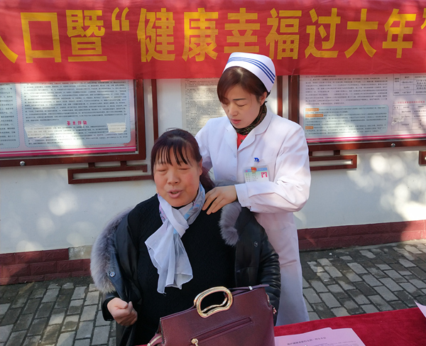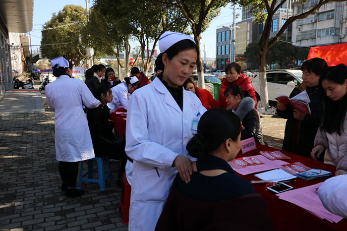 2月12日上午,在春节来临之际,庐江县中医院护理科普小组来到庐城镇塔山社区,开展党员活动日“健康扶贫先锋先行”义诊进社区活动。