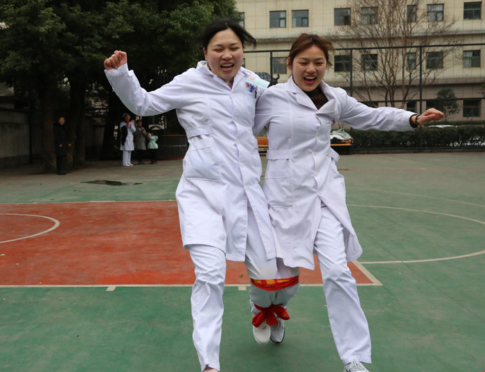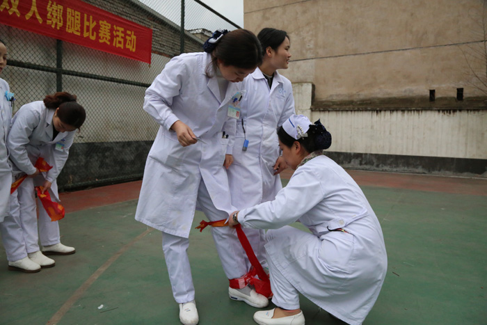 “三八”妇女节是全劳动妇女团结奋斗、争取解放的光辉节日。在第108个“三八”妇女节来临之际,我院组织了别开生面的双人绑腿比赛活动。