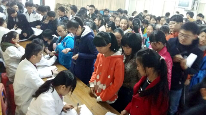 11月12日—13日清晨,我院体检中心组织外科、内科、五官科等28位医护人员来到庐江县第二中学为4000多名学生进行健康体检。