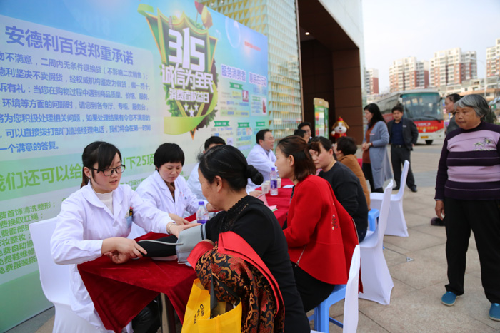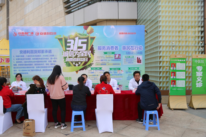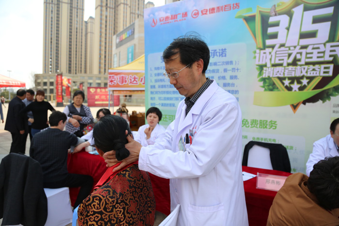 3月15日下午,县中医院与安德利集团联合举行“315消费者权益日”宣传义诊活动,许承建、钱业旺、邢燕彬等多名中医专家现场坐诊。