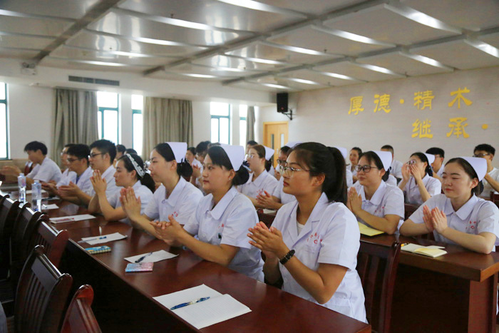 院医教部科教科组织各部门针对岗前培训特点,融合理论制度学习和临床实际操作,包括医务人员行为规范及诊疗规范、医院质量管理、输血管理制度、合理用药及处方书写规范、医院感染控制与预防知识、继续医学教育管理制度、心肺复苏操作等对新入职员工进行集中培训。