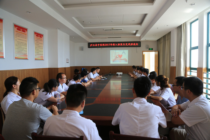 8月31日上午,县中医院召开新定科医师座谈会,院长陈明、医教部主任杨旭东与21名新定科医生参加。