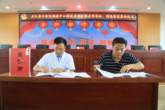 8月28日下午,庐江县中医院胸痛中心、卒中中心建设启动会暨合作单位、网络医院签约仪式在院第三会议室隆重举行。浙江大学医学院附属第二医院神经内科副主任医师吴磊、安徽医科大学第附属医院心内科主任医师陈斌、县卫计委副主任张延明、县120急救中心主任马小东、各镇卫生院院长、县中医院班子成员及医院全体中层干部出席本次会议。会议由县中医院副院长钱小清主持。