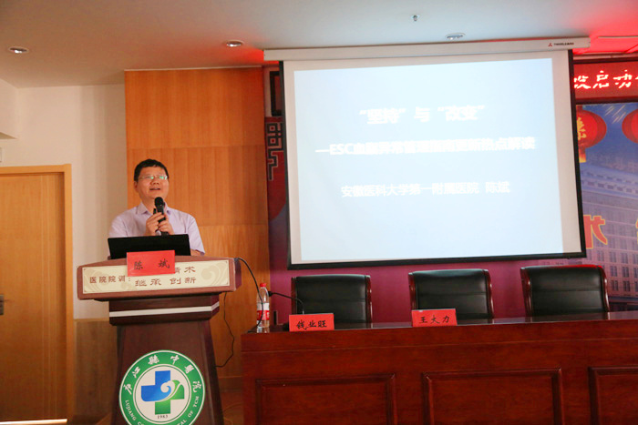 副院长王大力宣读《关于成立庐江县中医院胸痛中心的通知》、《关于成立庐江县中医院卒中中心的通知》。