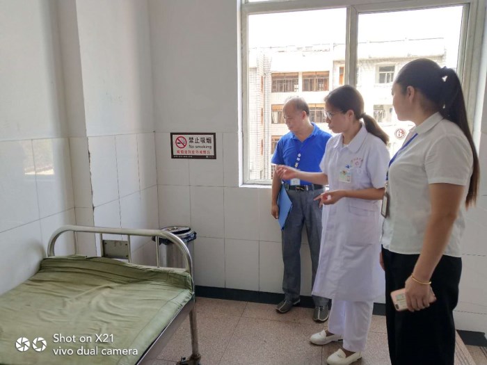 近日,县中医院分管院长钱小清带控烟检查小组,对医院病区、门诊等地进行控烟检查。