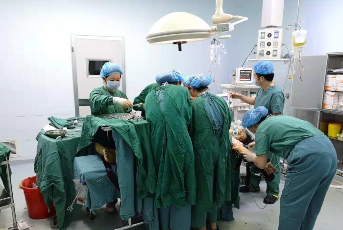 陈明院长亲临现场,迅速成立以妇产科杨秀梅主任为的妇产科、麻醉科、ICU、检验科抢救小组。并根据产妇情况,立即制定抢救方案,行“全子宫切除+双侧髂内动脉动脉结扎术”。抢救小组各司其职,积做好手术准备。为保证有充足的血液,检验科紧急准备充足的红细胞、冷沉淀、血浆等备用,陈明院长亲自与巢湖血站取得联系,以解燃眉之急。 经大家奋战四个多小时,产妇终于转危为安,无活动性出血,随即转入ICU进步治疗。ICU接诊后立即制定医疗护理方案,做好抢救接力准备。