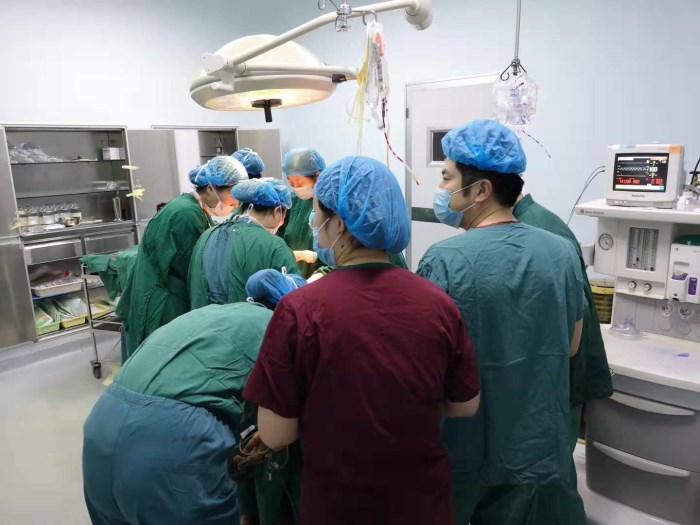 2018年10月8日晚23:29,庐江县中医院产房内,伴随着“哇哇”的洪亮哭声,又名新生儿降生了,5分钟后胎盘自娩完成,伴有50ml出血量。医师和助产士检查宫底轮廓清晰。23:52,产妇突然出现产道流血增多,瞬间出血量达到400毫升,值班医师立即给予子宫按摩、静脉联合应用宫缩剂,同时汇报上级医师组织抢救。经以上处理后产妇仍无明显好转,产道出现大量出血,产妇全身皮肤黏膜苍白,精神较烦燥,很快出现失血性休克的征象,生命危在旦夕。值班医师边继续加强宫缩,联系血源,加开静脉输液通道,面通知上级医师启动产后出血抢救应急预案。