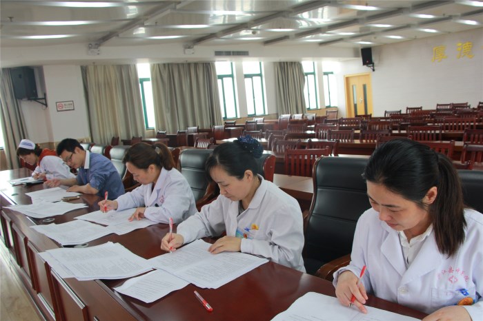 上午10:00,我院在第三会议室开展医院感染知识竞赛初赛,共计25个参赛队伍参加笔试。竞赛范围以医院感染预防与控制知识为主。选手们认真答题,经过40分钟的理论考试,根据考试成绩选拔出前六名参赛队伍进入决赛阶段。初赛结束后,评分人员立即现场阅卷、打分。