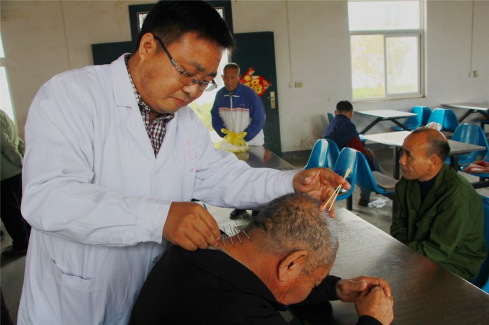 表演结束后,医护人员现场为老人进行了测量血压、心肺听诊、健康咨询等,还为肩颈腰腿痛的老人提供针灸、推拿等中医特色治疗。另外,根据老人们的身体状况,对他们的合理饮食、日常用药和生活注意事项进行指导。