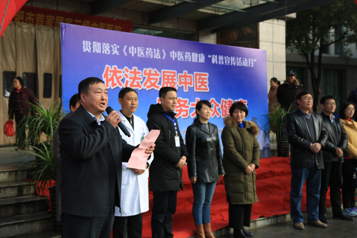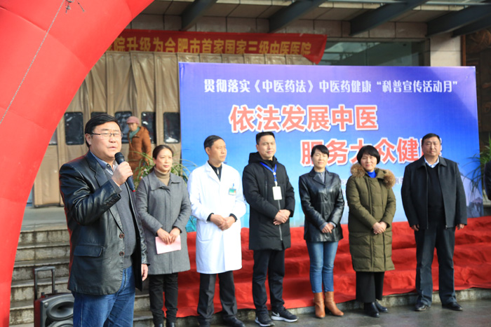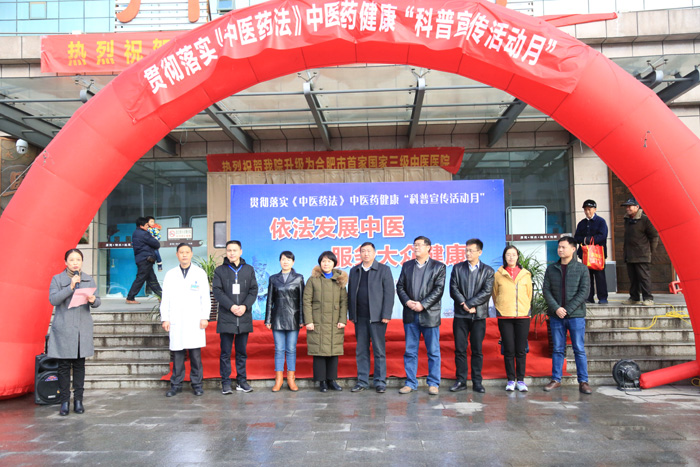 为深入贯彻落实《中医药法》,进步弘扬中医药文化,传播中医药健康知识,12月20日上午,庐江县贯彻落实《中医药法》中医药健康“科普宣传活动月”活动在县中医院盛大开幕。安徽中医药大学第附属医院干部内分泌科刘怀珍主任、消化内科章小平主任,合肥市卫计委刘兆龙处长、庐江县卫计委吕能善副主任以及县中医院导班子成员出席活动开幕式。开幕式由县中医院副院长钱小清主持。