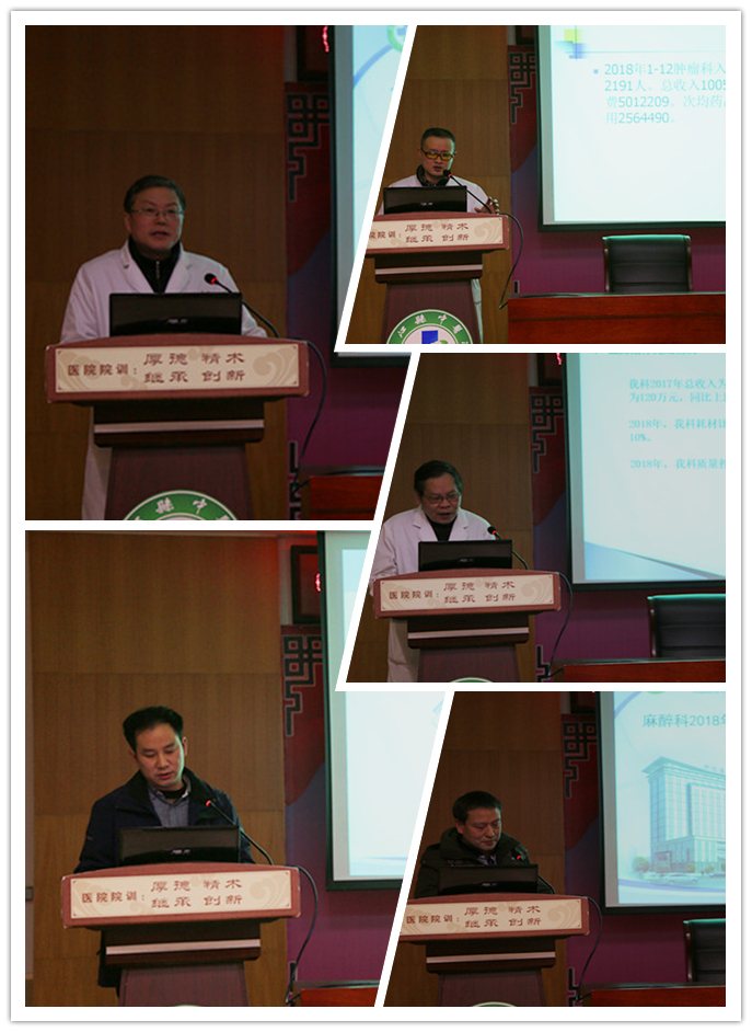 会上,各科室负责人分别从科室业务指标、三费控制、医共体、健康扶贫、荣誉表彰等方面进行了汇报。述职报告中总结了2018年工作完成情况和亮点,查找了科室发展中存在的问题,并分析原因,提出了2019年科室工作计划以及具体措施。