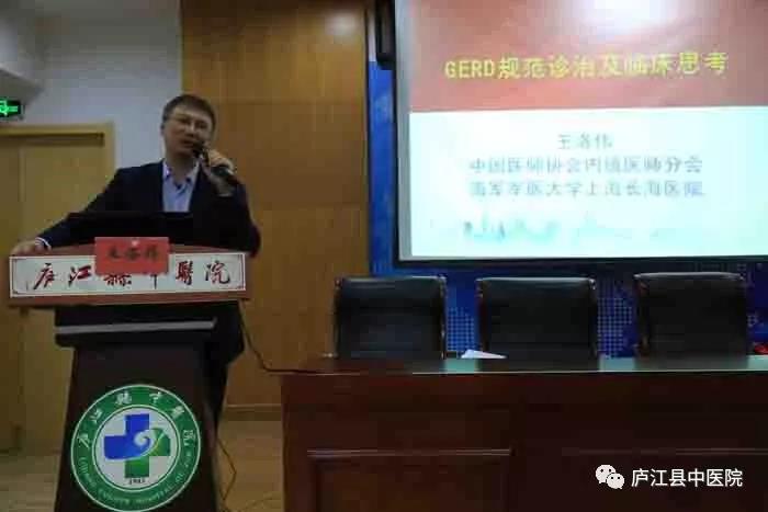 上海长海医院消化内科杜奕奇教授、王洛伟教授、胸外科姚仕华博士,皖南医学院附属弋矶山医院消化内科主任何池义教授,安徽省立第二人民医院段报喜副院长、消化内科王俊先博士受邀来到我院进行学术讲座,中国科学技术大学第附属医院消化内科主任张开光教授主持讲座,庐江县医疗机构200余名医务人员参加听课。
