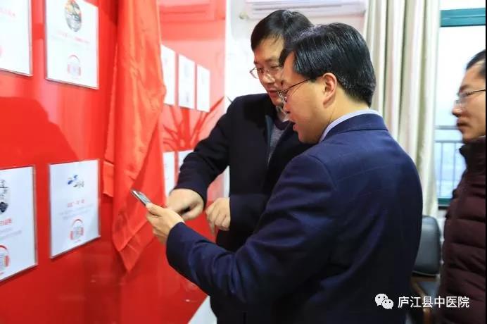 1月19日下午,庐江县委副书记周天斌,庐江县委常委、组织部长李卫,庐江县卫计委主任夏必才,庐江县中医院党委书记、院长陈明为安徽省个党建有声图书馆揭。