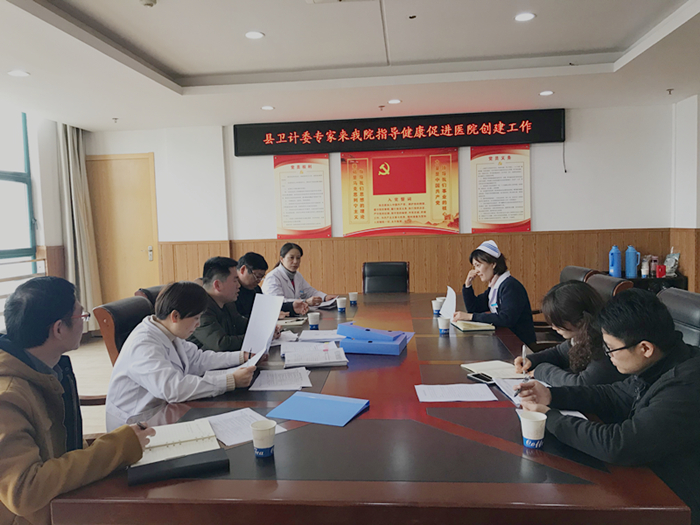 为进步推进健康促进医院创建工作,3月13日下午,县卫计委组织县疾控中心副主任马梦林、健康教育科科长李军行来我院对创建健康促进医院进行专项指导。副院长钱小清,门诊部、护理部、防保科等科室负责人参加会议。
